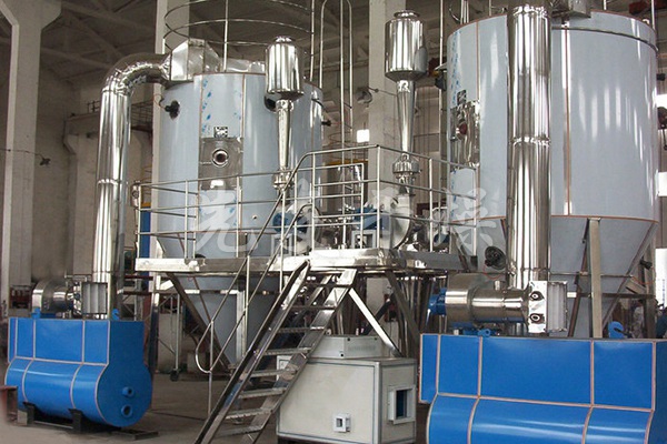 该生产线由供料系统、介质循环系统、空气加热净化系统、干燥塔系统、收料系统、控制系统等多个系统整合而成。主塔系统集中了目前喷雾干燥工程的所有技术,喷干机组的收料系统由旋风分离器+布袋除尘器组合形成。一级旋风采用高气量效率旋风进行收集,其收粉率能达到96%左右分,而布袋除尘器是针对蛋类除尘专门设计的优化设备,能使物料与风进行完全分离并沉降,布袋为拒水防油防静电布袋,过滤目数可达500目以上。