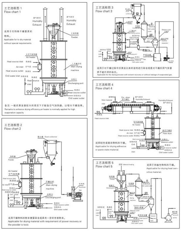 4.物料流向单一、无返混现象、干燥均匀、质量稳定、不需再混合。