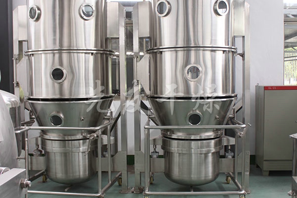FL系列立式沸腾制粒干燥机的原理是物料粉末粒子,在原料容器(流化床)中呈环形流化状态,受到经过净化后的加热空气预热和混合,将粘合剂溶液雾化喷入,使若干粒子聚集成含有粘合剂的团粒,由于热空气对物料的不断干燥,使团粒中水分蒸发,粘合剂凝固,···